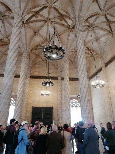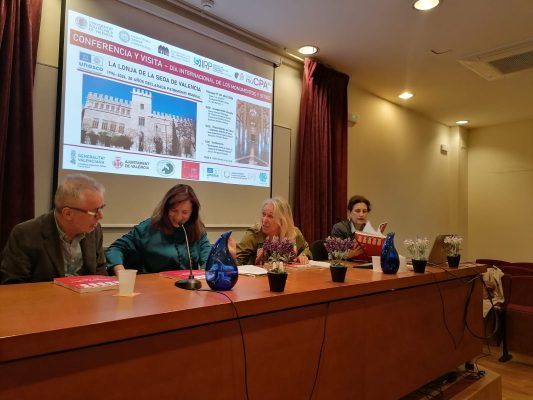 Tras la presentación del libro, el Dr. Arquitecto Arturo Zaragozá, especialista en arquitectura medieval valenciana, historia de la construcción y conservación del patrimonio, impartió la conferencia «Reflexiones antes de visitar la lonja de la seda de Valencia». Posteriormente, dirigió una visita guiada a la Lonja de la seda de Valencia, único monumento patrimonio de la humanidad por la UNESCO en esta ciudad.