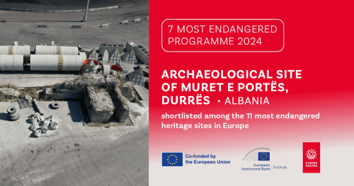 Asentado sobre la antigua calle de Egnatia, el yacimiento arqueológico de Muret e Portës exhibe restos de las épocas arcaica, romana y bizantina. Sin embargo, su ubicación se encuentra muy expuesta, en medio de un muelle de carga y descarga del puerto de Durrës. A pesar de que el yacimiento ha sido designado sitio protegido, se ha puesto en marcha un proyecto de construcción destinado a desarrollar un puerto moderno. Según las investigaciones llevadas a cabo por el arqueólogo Apollon Baçe y recogidas por Amfora Media en diciembre de 2023, la empresa «MBM Port» ha destruido 78 metros de la muralla defensiva occidental, de 140 metros de longitud. Es urgente proteger la torre y la muralla oriental, de 62 metros de longitud.