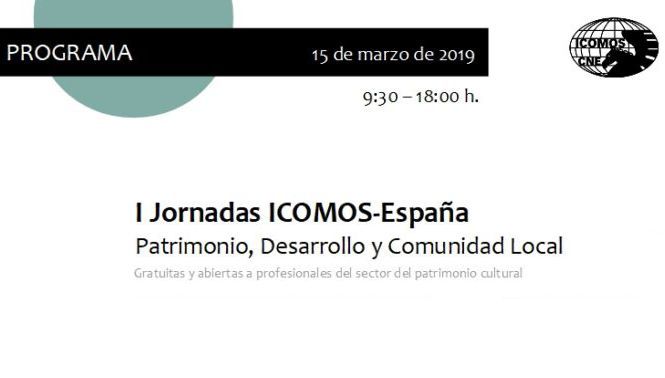 El próximo día 15 de marzo de 2019 tendrán lugar en el el Auditorio del Museu d’Historia de Catalunya las I Jornadas ICOMOS-España: Patrimonio, Desarrollo y Comunidad Local.