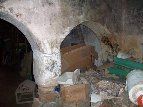 La entrada se encuentra en el patio de la casa núm. 1, donde hay un pequeño aljibe abovedado que conduce al vestidor; tiene dividida su altura por un moderno suelo y apenas quedan restos de los arcos y columnas. Enfrente de la entrada, se abre un arco escarzano que da al área templada o bayt al-wastani; con unas dimensiones de 13 x 7m. Se conserva una de las pilas de inmersión, así como la huella de la otra. Tiene dos espacios porticados con tres arcos de herradura ligeramente apuntados, con columnas reutilizadas y capiteles hispanomusulmanes; los espacios laterales, con bóvedas de cañón, claraboyas estrelladas y octogonales; la que cubría la parte central, ya no existe.