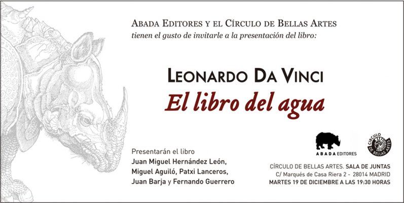 La presentación de un espléndido Libro del Agua, con textos y dibujos de Leonardo da Vinci, de nuestro socio Miguel Aguiló se celebrará el próximo martes 19 de diciembre a las 19:30 horas en el Circulo de Bellas Artes.