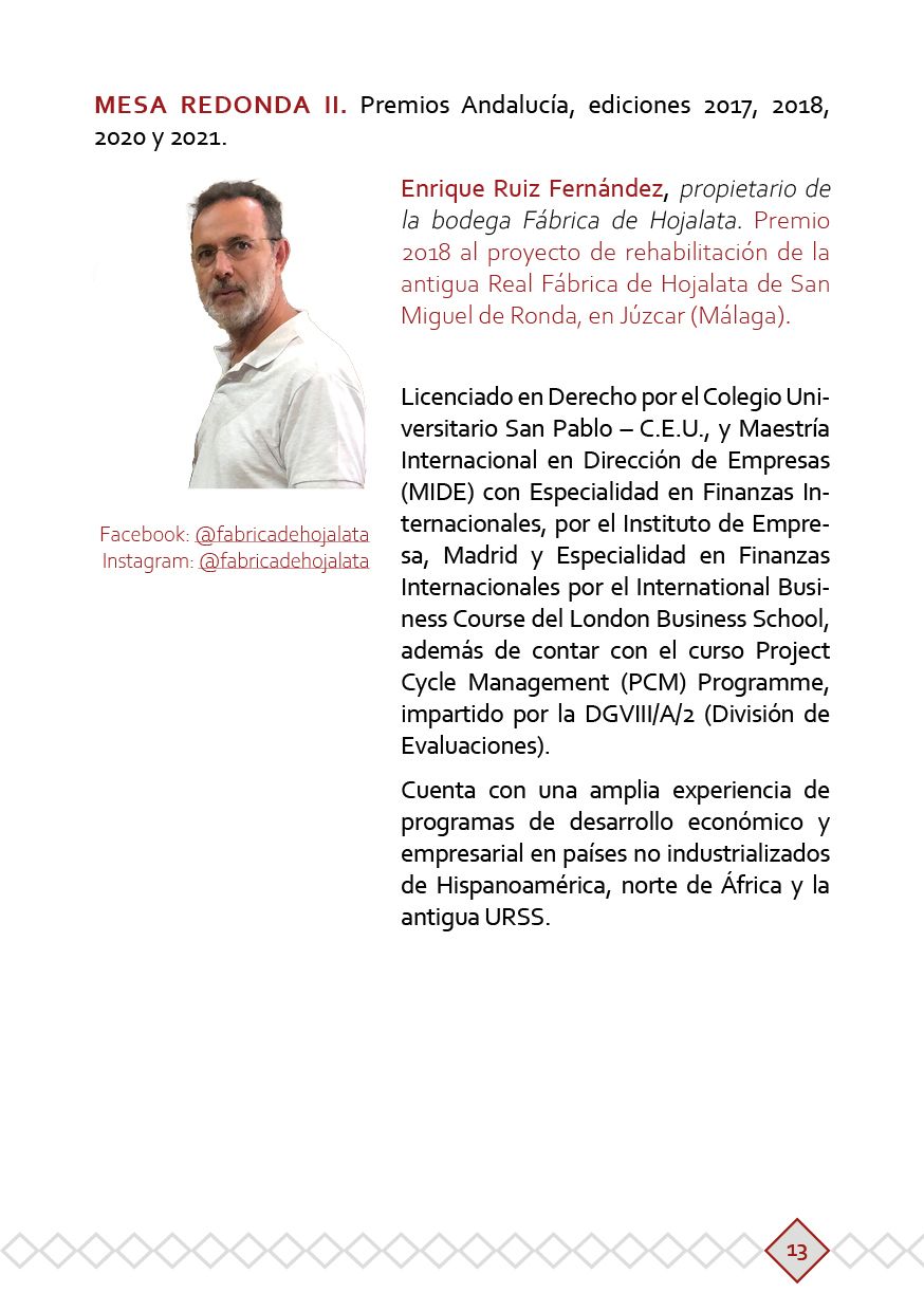12.00 13.15 Mesa redonda. Premios Andalucía, ediciones 2017, 2018, 2020 y 2021.