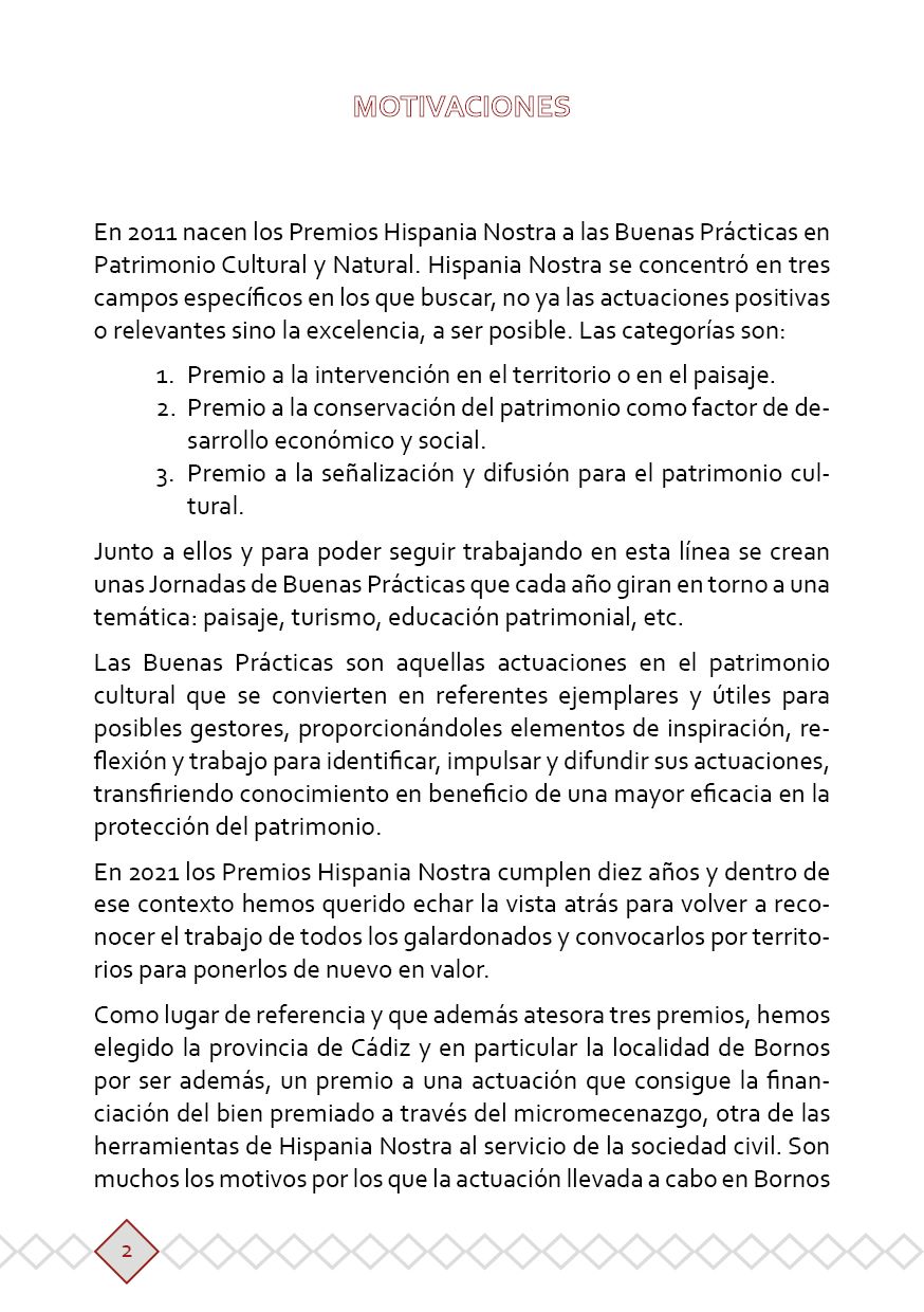 Como lugar de referencia y que además atesora tres premios, hemos elegido la provincia de Cádiz y en particular la localidad de Bornos por ser además, un premio a una actuación que consigue la financiación del bien premiado a través del micromecenazgo, otra de las herramientas de Hispania Nostra al servicio de la sociedad civil. Son muchos los motivos por los que la actuación llevada a cabo en Bornos nos parece una referencia, por lo que hemos organizado esta jornada de trabajo en la que hemos convocado a todos los galardonados en Andalucía por categorías, con la idea de que cada uno de ellos presente sus proyectos.