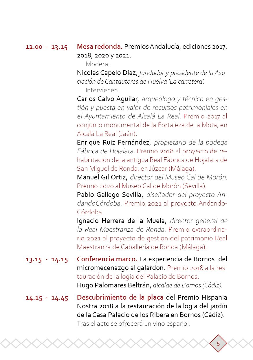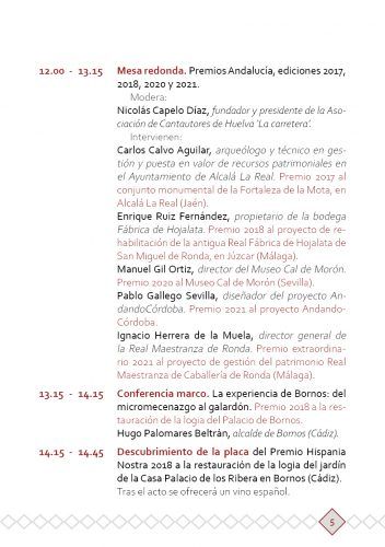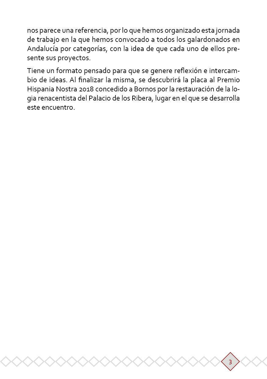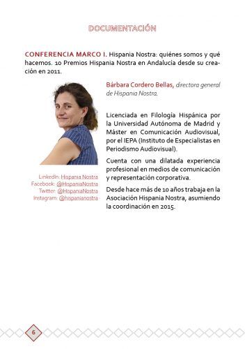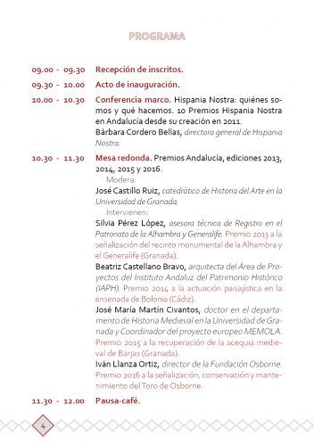 10.00 10.30 Conferencia marco. Hispania Nostra: quiénes somos y qué hacemos. 10 Premios Hispania Nostra en Andalucía desde su creación en 2011.